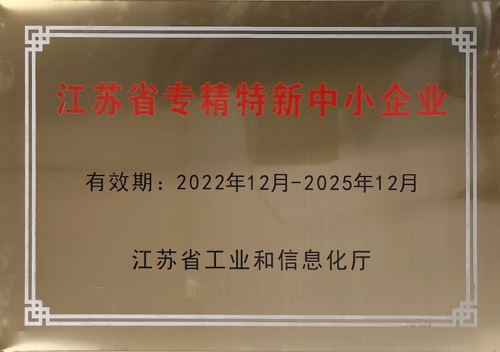 2022年12月20日我司“專精特新”認定項目正式通過,取得“江蘇省專精特新中小企業”正式認定并授牌。